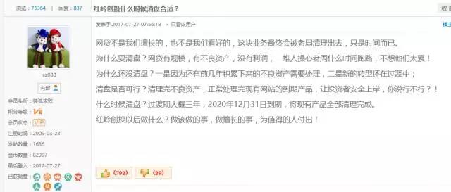 在陆金所风波平息不久,p2p界的网红红岭创投董事长周世平又抛出了一则爆炸性消息,红岭创投要将网贷业务清盘,过渡期大概三年,2020年12月31日到期,将现有产品全部清理完成。
