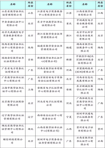目前国内具有出具数据证书的机构如下图,君子签出具的是由东方中讯数字证书有限公司提供的合法有效。